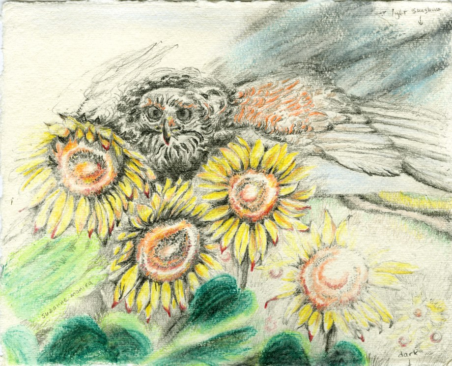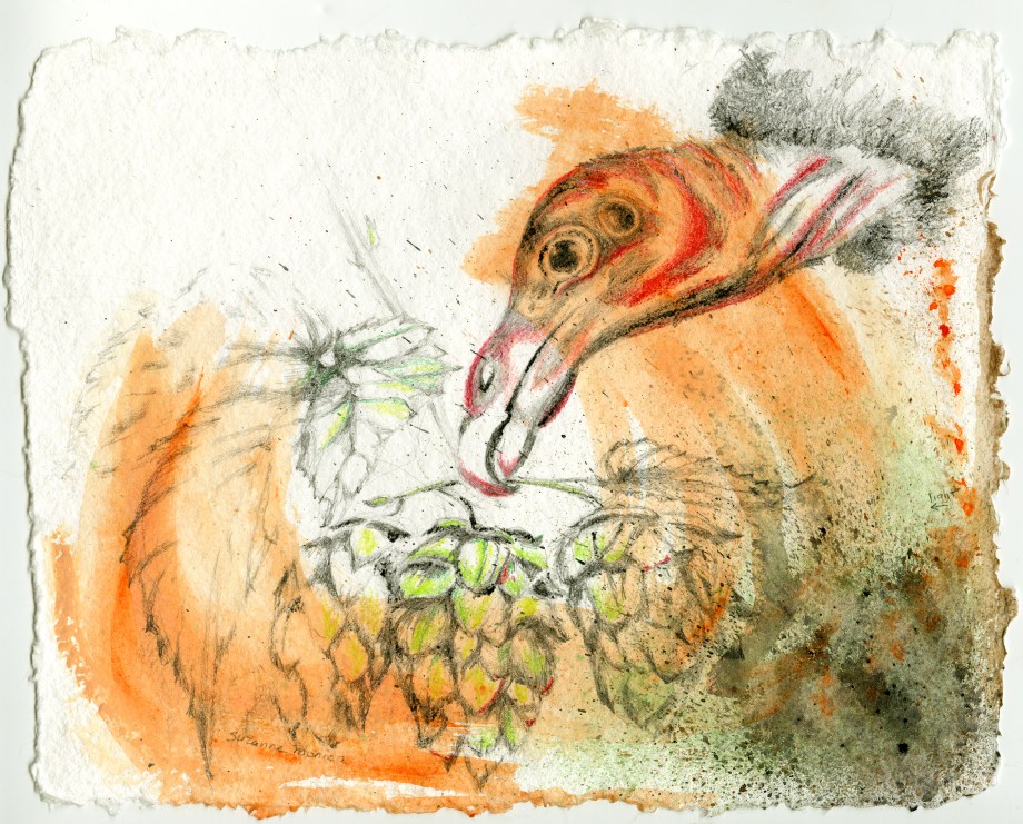 fresh color to the background of my work. I use relief prints to give the darkness and the details.